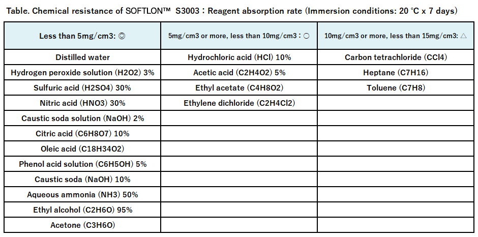SOFTLON™, mainly composed of polyethylene, inherits the high chemical resistance of the main component. With superior resistance against acids, alkalines, and organic solvents, which have adverse effects on other foaming materials including swelling, shrinking, and to dissolving, SOFTLON™ is serving various industries from the background.