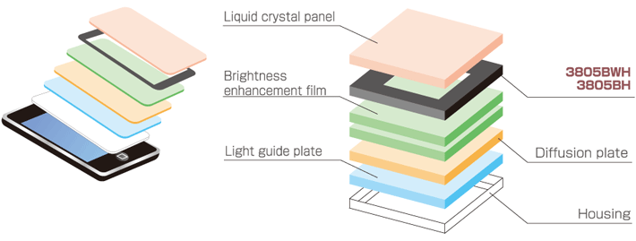 | Backlight module | Reflection/ light shielding | Anti repulsion | 3800BWH | 3803BWH | 3805BWH | 3806BWH | 3808BWH | 3810BWH | ||||