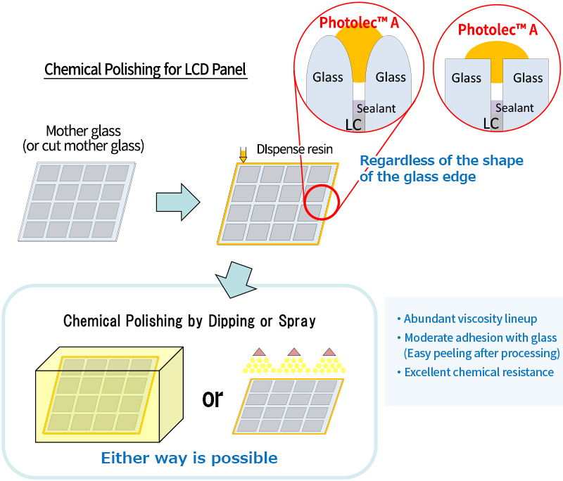 The UV-curing adhesive Photolec A is a UV-curing high-transparency adhesive ideal for attaching optical devices.