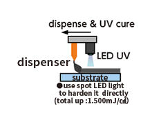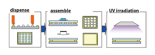 Hardening of sealant Hardening of sealant- UV irradiation from cross section(UV irradiation from the side may damage the liquid crystal)