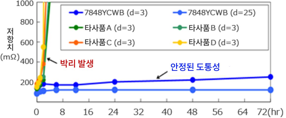 필러 선정 외에도 독자적인 분산성 제어 기술을 통해 도전 성능의 고기능화를 실현합니다.