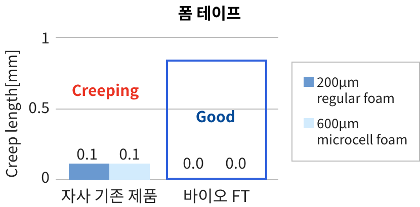 1석유유래의 기존 제품대비 동등 이상의 테이프 성능을 발휘합니다