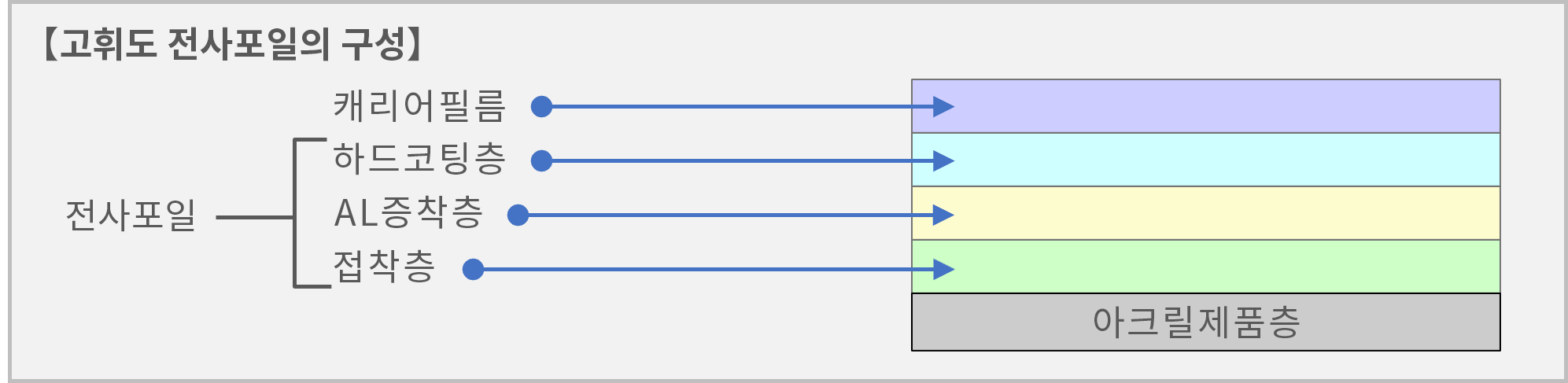- 전사 포일 구성층에 기능층 부여 가능(하드코팅, 금속, 내식 등)