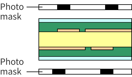 하기 이미지와 같이 박막 테이프를 양면에 붙임으로써, 솔더 레지스트의 산소저해를 방지하는 것이 가능