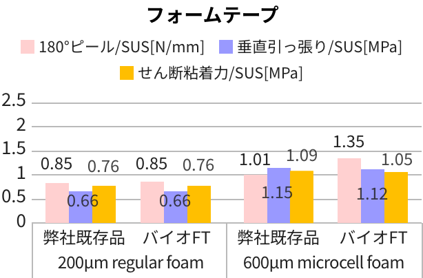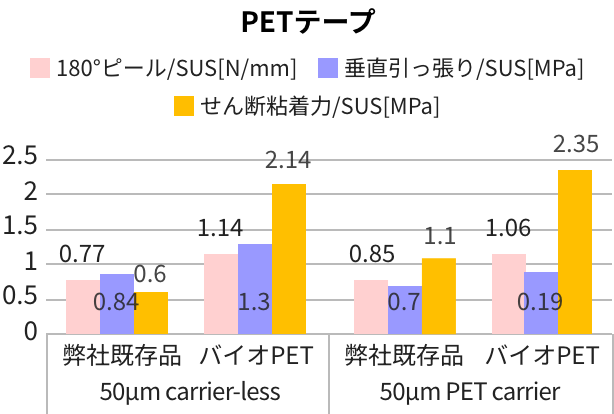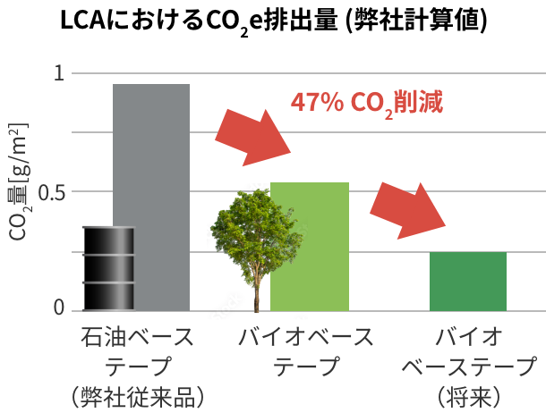 1石油由来の従来品同等以上のテープ性能を発揮