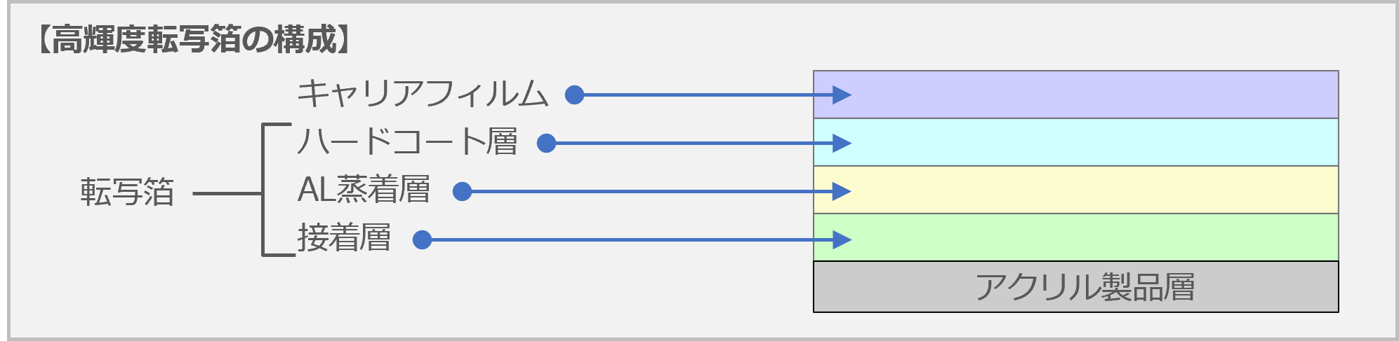 - 転写箔構成層に機能層の付与可能 (ハードコート、金属、耐食など)