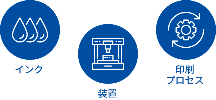 高粘度インクジェットは多くのメリットがある一方、装置と材料を揃えて吐出する、印刷プロセスの最適化が必要です。