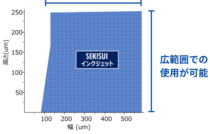 積水化学のインクジェットは高粘度であることから着弾後に濡れ広がりにくく高解像度パターン塗布を可能としました。