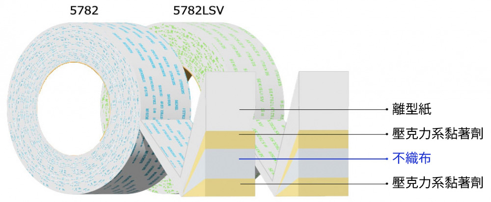 低臭味、超低VOC車輛用雙面膠帶 5782系列