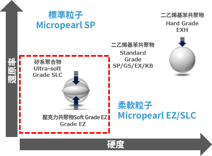 EZ 是聚合物粒子,由於其柔軟性,對減少振動噪音和降低基板損壞具有良好的效果。此外,由於低恢復率,它也是柔性基材(如薄膜)的最佳間隔材料。