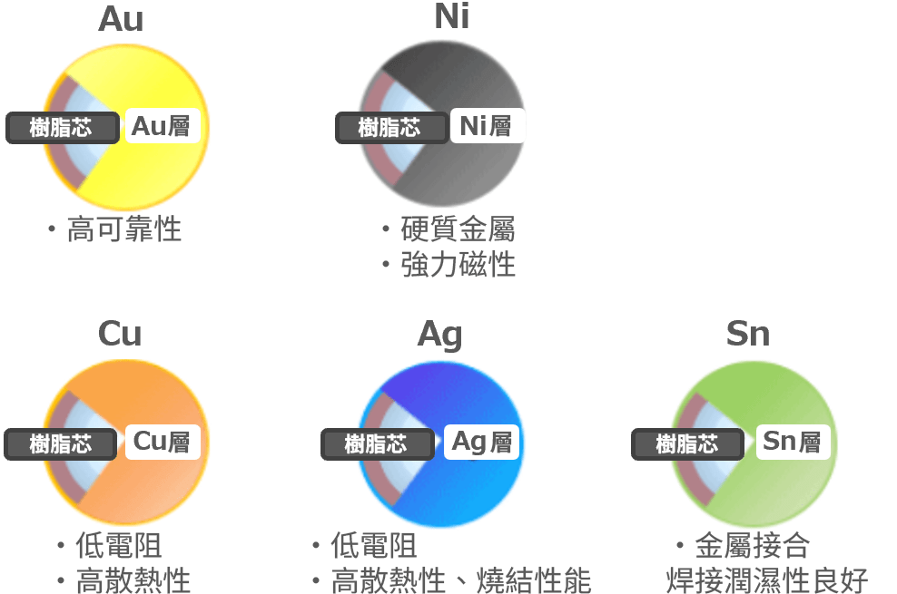 - 可透過各種金屬被覆賦予功能