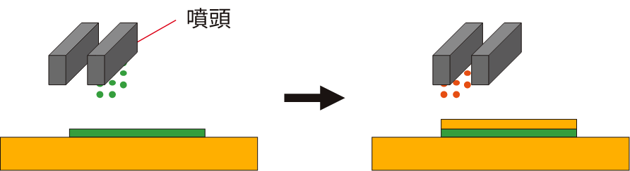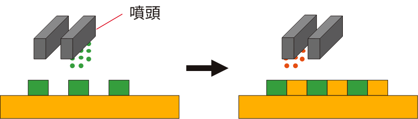 - 按需式 : 可在任意位置印刷圓形、直線等形狀。無需曝光顯影可減少製程。