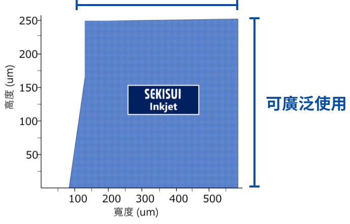 積水化學的Inkjet噴墨因具高黏度,所以著墨後難以潤濕擴散,可塗佈出高解析度的圖案。